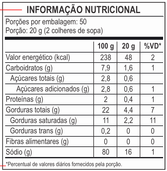 Conservação: Manter em temperatura até 25°C. Após aberto, armazenar refrigerado e consumir em até 3 dias.