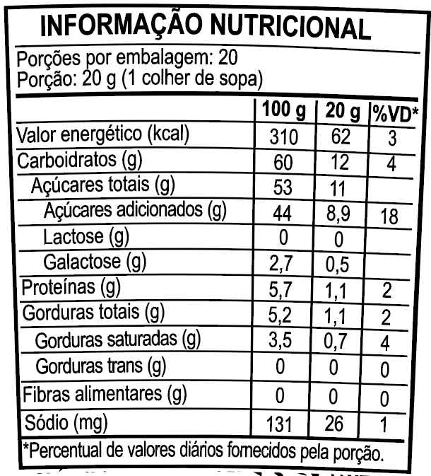 Este não é um alimento reduzido em valor energético. Seu consumo deve ser feito preferencialmente sob orientação de nutricionista ou médico.