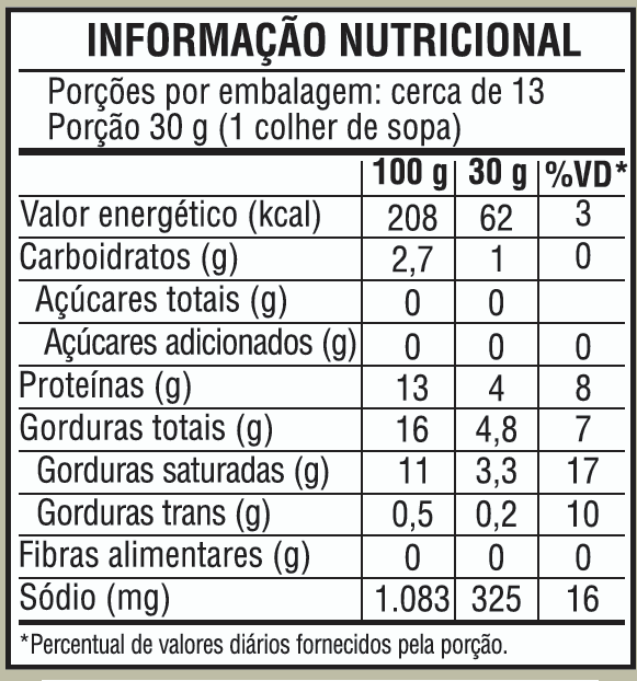 | Conservação | Conservar de 1º a 10ºC. Após aberto consumir em até 5 dias. |