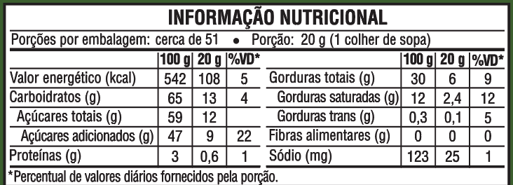 Tabela nutricional