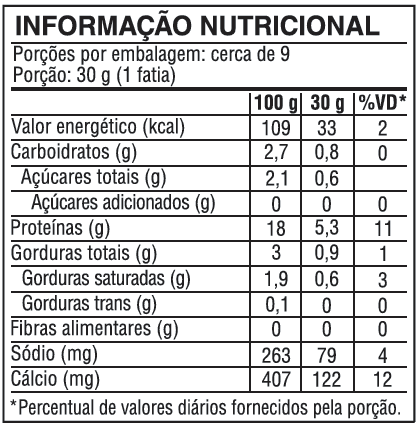 Pelo baixo teor de gordura, rico em albumina, sendo de alta digestibilidade, este queijo originário da Itália é leve e dietético. Pode ser consumido por quem segue dietas especiais ou atletas que querem garantir proteína extra para os treinos. Na versão light, tem redução de 28% de calorias e de 70% de gordura.